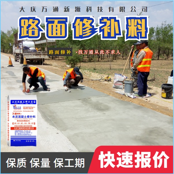 大慶萬通新源科技有限公司獨有的混凝土路面高強速補料,是水泥混凝土路面病害修復的好材料。疲勞、凍融循環(huán)、彎曲壓力、滲水和基層破壞等原因都會引起水泥路面的破損,從而帶來高昂的維護費用。與以往的剛性修補方法不同,混凝土水泥路面維修速補膠提供了一種獨特的柔性修補產(chǎn)品和技術(shù),高柔性、高抗拉性,可跨伸縮縫施工和高抗壓性使得混凝土快補產(chǎn)品為水泥混凝土路面提供了******性的修補。傳統(tǒng)的剛性修補方案,如環(huán)氧砂漿和快干水泥產(chǎn)品,由于其自身的粘結(jié)失效,抗疲勞性低以及與原路面不同的伸縮系數(shù),修補面會在短時間內(nèi)失效或產(chǎn)生新的裂縫,需要反復修補,有效期短且費用高昂。大慶萬通新源科技有限公司的混凝土水泥路面維修速補膠可以隨原路面一起伸縮,移動,從而避免了粘結(jié)失效和產(chǎn)生新裂縫。萬通快補產(chǎn)品優(yōu)異的粘結(jié)性、柔韌性和高防滑性,特別適用于水泥路面的淺層粘合修補,多邊角混凝土板層修補,跨伸縮縫修補以及路面沉陷修補。萬通混凝土病害修補料針對混凝土起皮起沙、斷板裂縫、蜂窩麻面、坑槽露石子、漏筋掉皮、橋梁的掉皮漏筋快速通車使用時間長。應(yīng)用萬通快補產(chǎn)品,施工后一天就可以恢復交通。大慶萬通新源科技有限公司的萬通水泥路面維修速補膠適用于高速公路、機場路面、農(nóng)村村村通路面、廠坪、學校操場、市區(qū)公路、小區(qū)路面、橋梁、水泥路面的修補。使用萬通特快補材料修補路面可以一勞永逸! 水泥地面起砂怎么辦,混凝土修補劑混凝土地面起砂,混凝土地面修補,地面起砂怎么辦,
